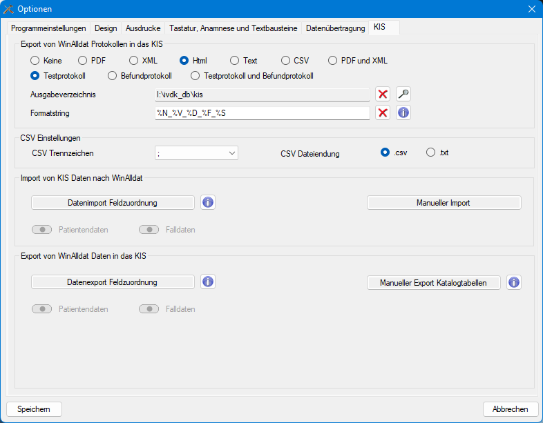 Einstellungen für den Datenaustausch zwischen Klinikinformationssystemen und dem WinAlldat Net Programm