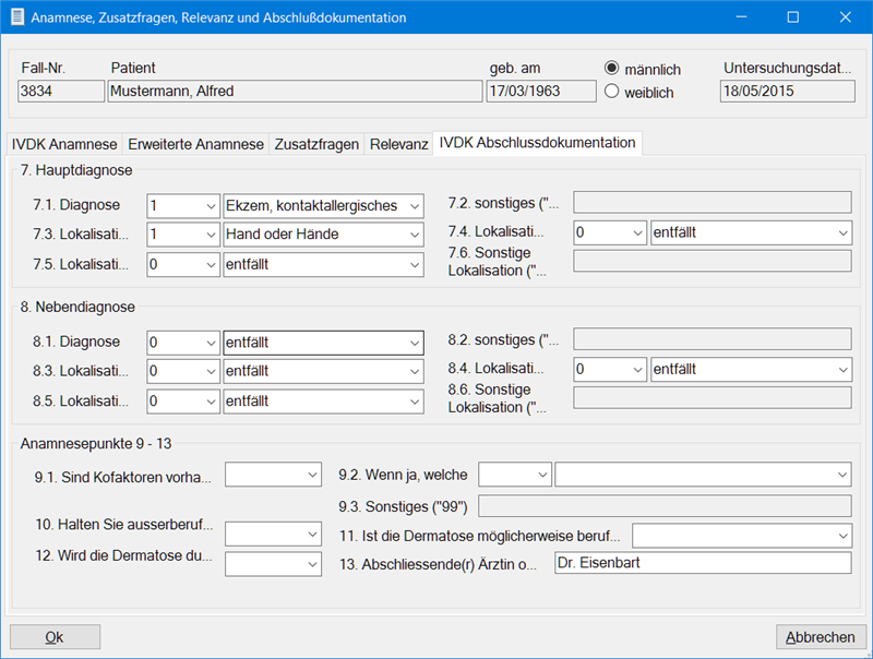 IVDK Anamnesefragebogen Seite 2 - Abschlußdokumentation bzw. Befund