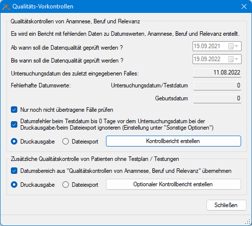 Ab Version 2.0 R9 vom 01.11.2017 ist zusätzlich ein Qualitätskontrolle bezüglich erfasster Patienten ohne Testplan oder Testungen (Reaktionen) verfügbar, um verwaiste Fälle -d.h. fehlerhafte und undokumentierte Fälle - über das Programm WinAlldat Net auffinden zu können.