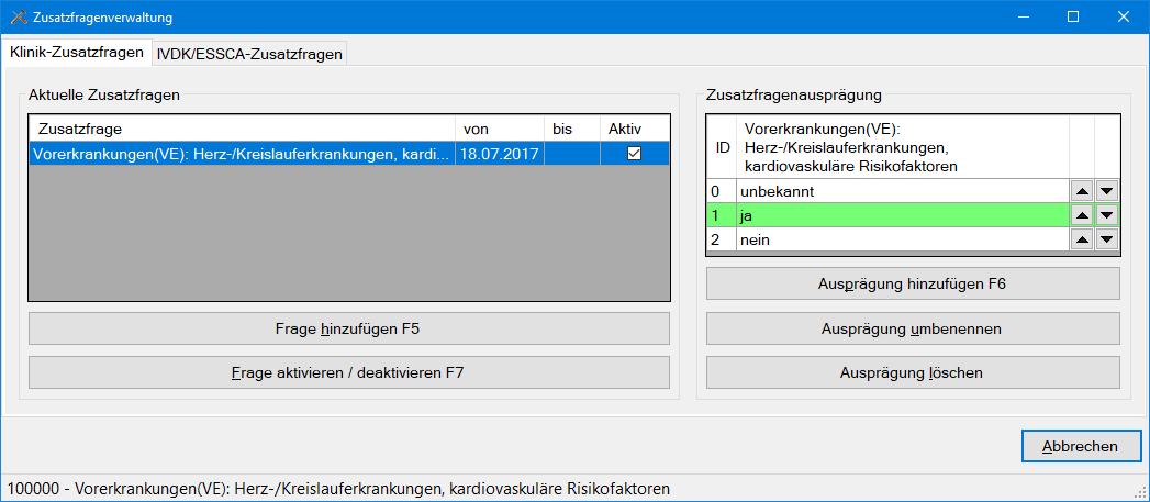 •Unter dem Menüpunkt "Dienstprogramme => Zusatzfragenverwaltung" können Sie Zusatzfragen definieren, die dann in der Anamnese mit den von Ihnen festgelegten Ausprägungen eingesetzt werden können.